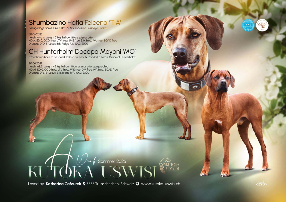 Roxys litter sister Tia is to become the foundation bitch of Katharina Cafoureks Swiss kennel Kutoka Uswisi. |